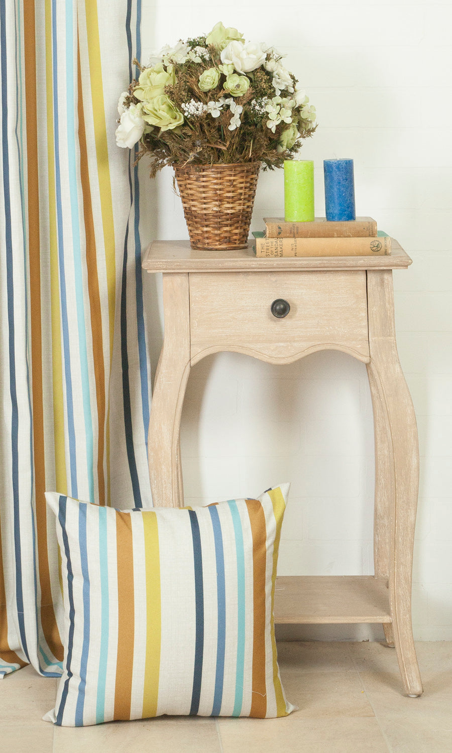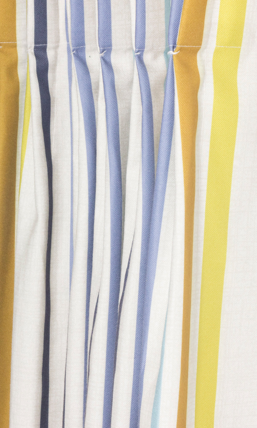 Marrying a never-out-of-style pattern with a sparkly summer vibe, 'Sahara Showers' adds oomph with a modern flair. Its vertical stripes bearing a neutral mix of greys, blues and browns, spiced by cheery bright yellows and orange, bring the right bit of detail to the room while relaying an unfussy aesthetic of clean lines. And the shots of vibrant yellow do an incredible job of infusing the space with liveliness and a spark of joy.