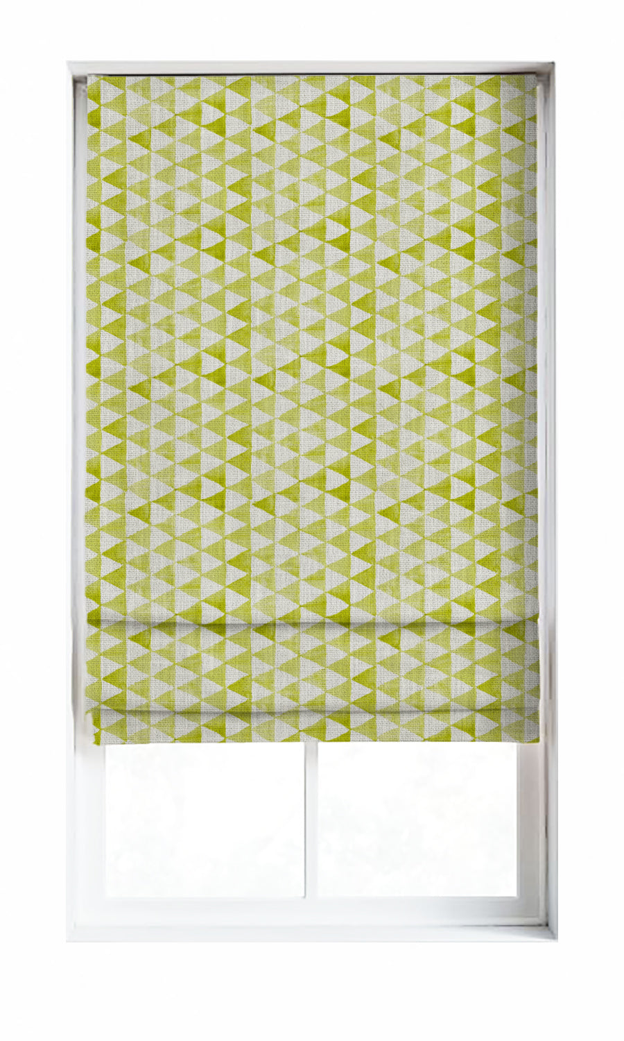 -Layer with plain curtains: Layer this patterned roman blind with plain curtains that match its lime green accent tones. This is a great way to add visual depth as well as insulation. This combination will also enable highly versatile control of privacy and light.