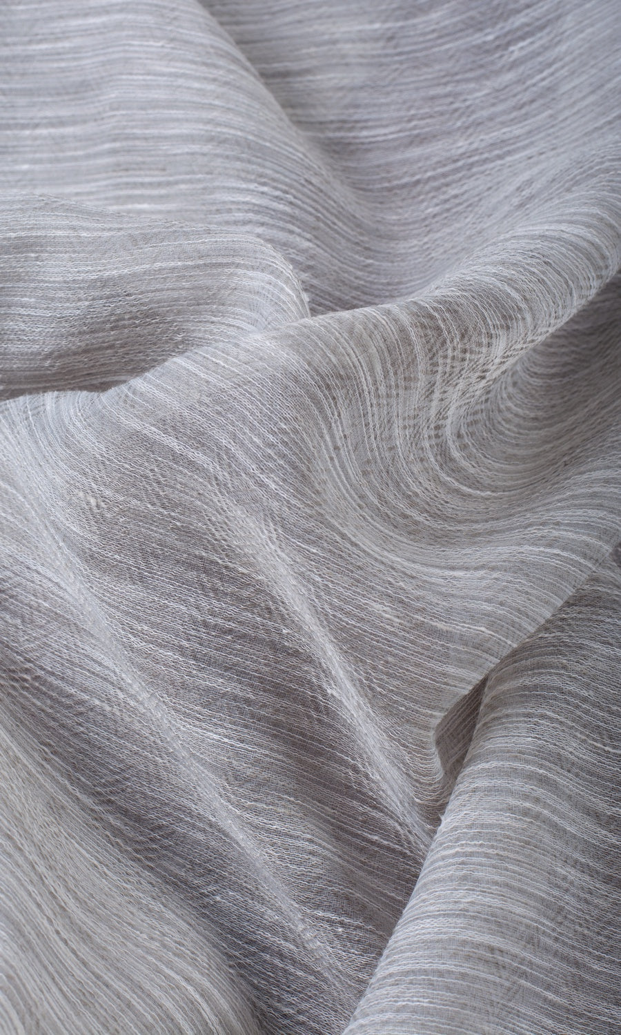 'Smokeytone' draws its moody grey striations from windswept monsoon skies where clouds drift fast and light filters slow. It wraps your spaces in an interplay of muted hues and textures, offering just enough airiness to let light in and keep eyes out. This grey sheer is a fitting addition to any space that favours calm over contrast, textural warmth over elaborate patterns, and diffused light over complete blackout.