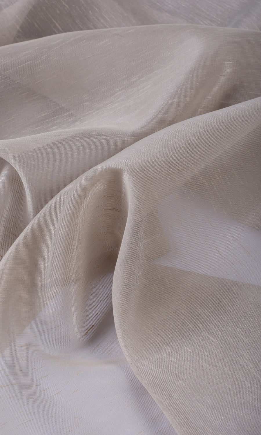 Capturing the quiet grace of sun-dried pampas swaying in late summer breeze, 'Sombero Tan' brings you a soft taupe whisper-light sheer for serene interiors. Its hushed hues lend an ethereal touch while its transparent weave transforms light into a gentle haze. Let it dress a glass-paned living room, gently frame a little kitchen window or wrap a bed canopy. A calm, collected charm is assured.