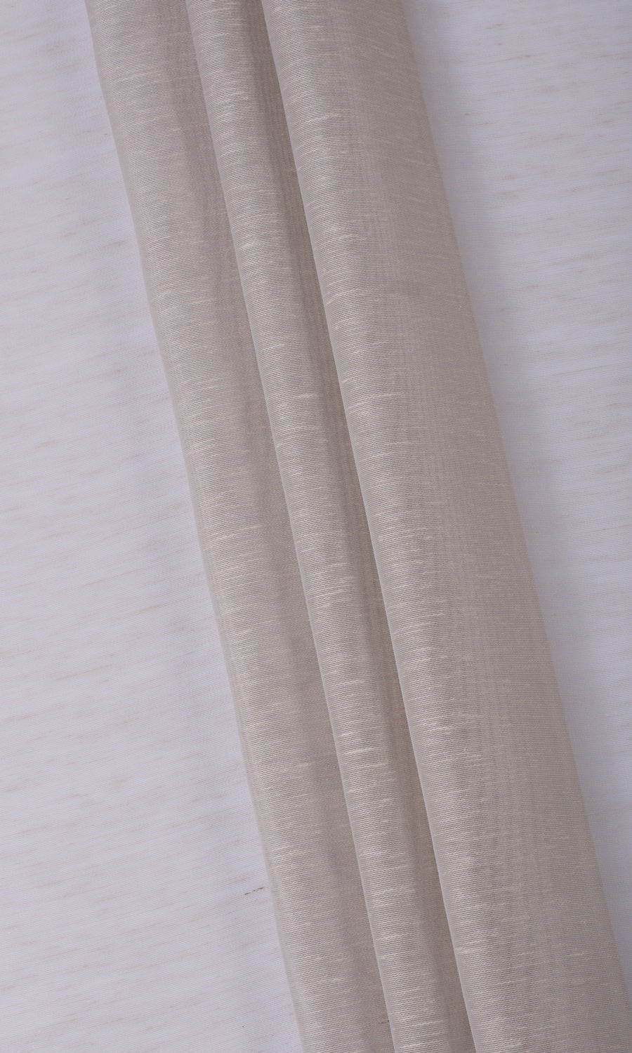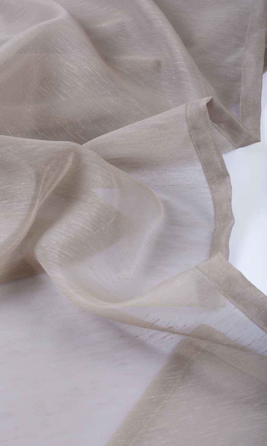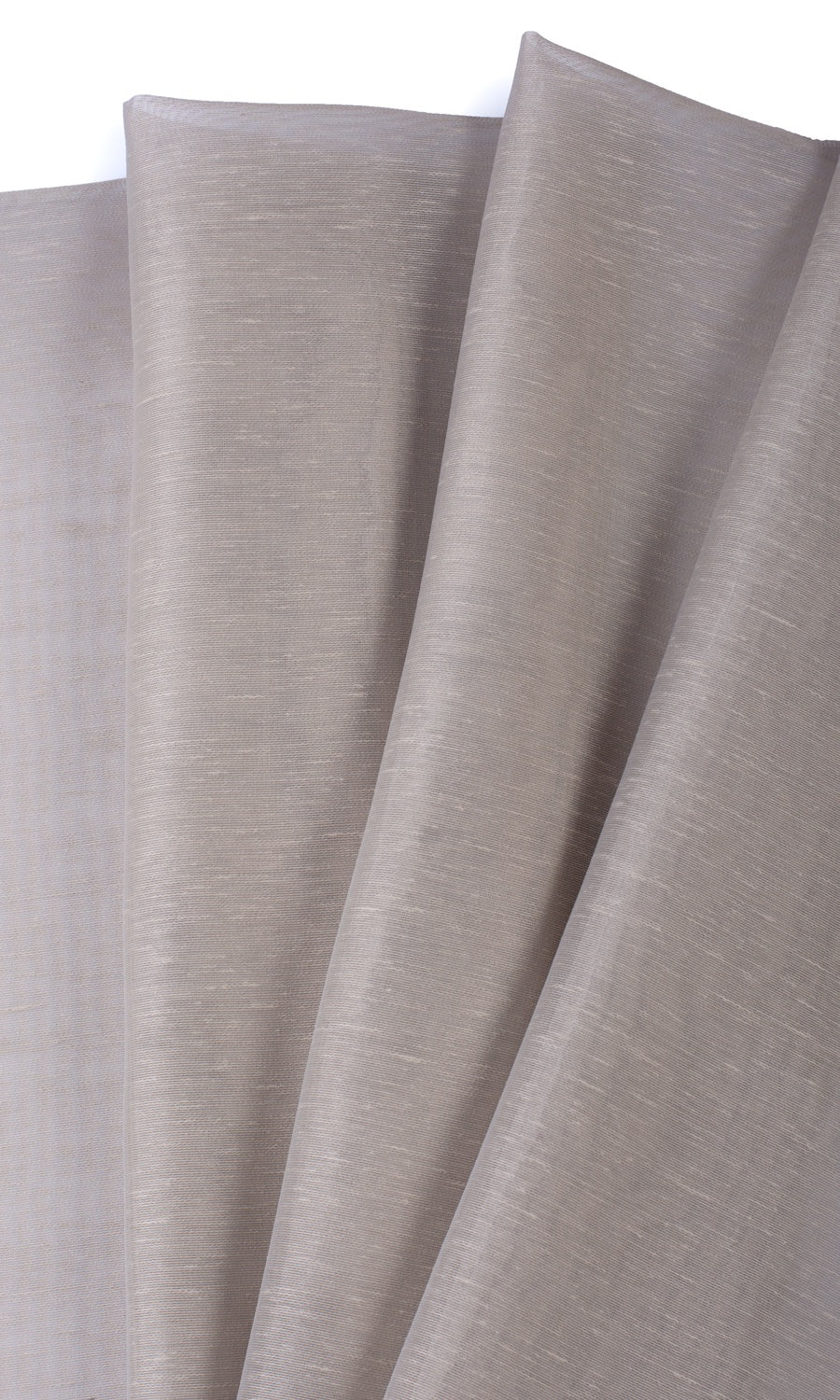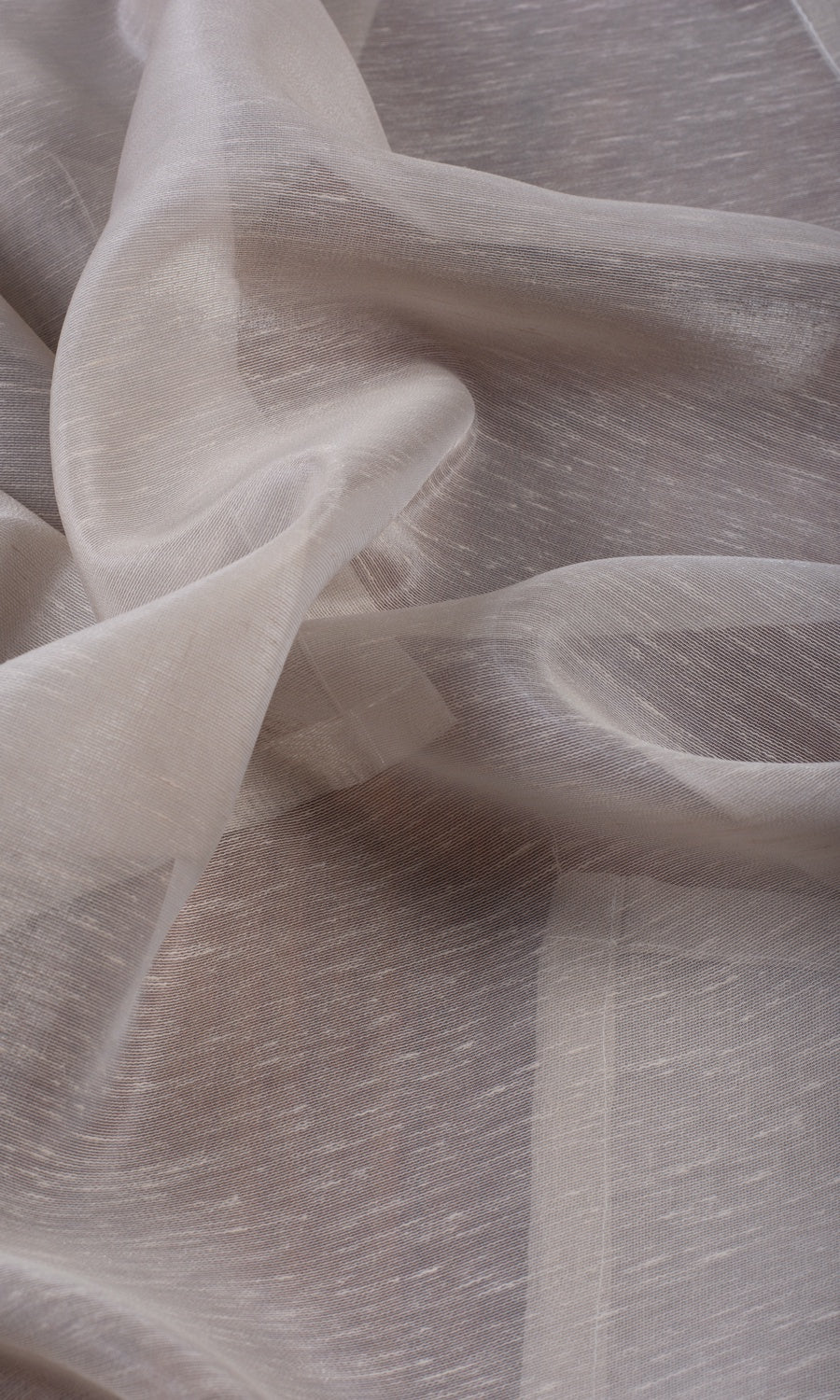 Capturing the quiet grace of sun-dried pampas swaying in late summer breeze, 'Sombero Tan' brings you a soft taupe whisper-light sheer for serene interiors. Its hushed hues lend an ethereal touch while its transparent weave transforms light into a gentle haze. Let it dress a glass-paned living room, gently frame a little kitchen window or wrap a bed canopy. A calm, collected charm is assured.