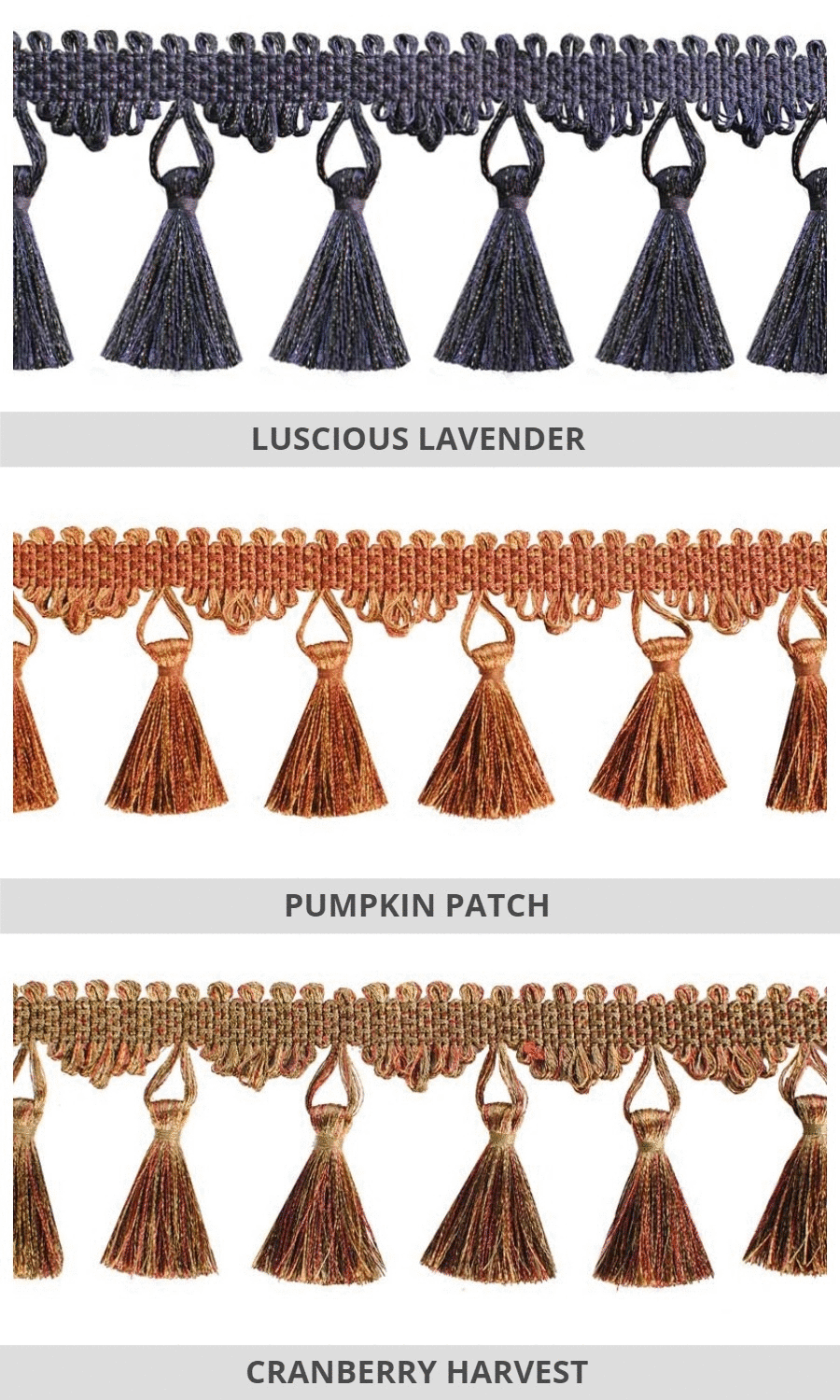 Dress up your custom roman blinds with our delightfully rich tassel trims.