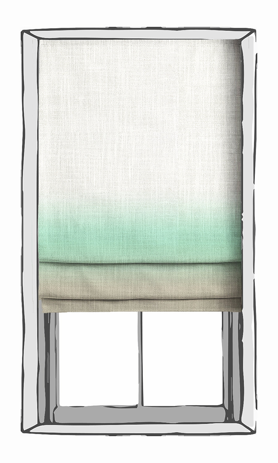 -Consider the minimised look: Ombre's full progression of hues can only be visible when the roman blind is folded down to its full stretch. When folded up, you can see the top white portion and a short gather of the gradient colour. Factor in this aspect when you check for colour-cohesiveness between the blind and the overall palette of the room.
