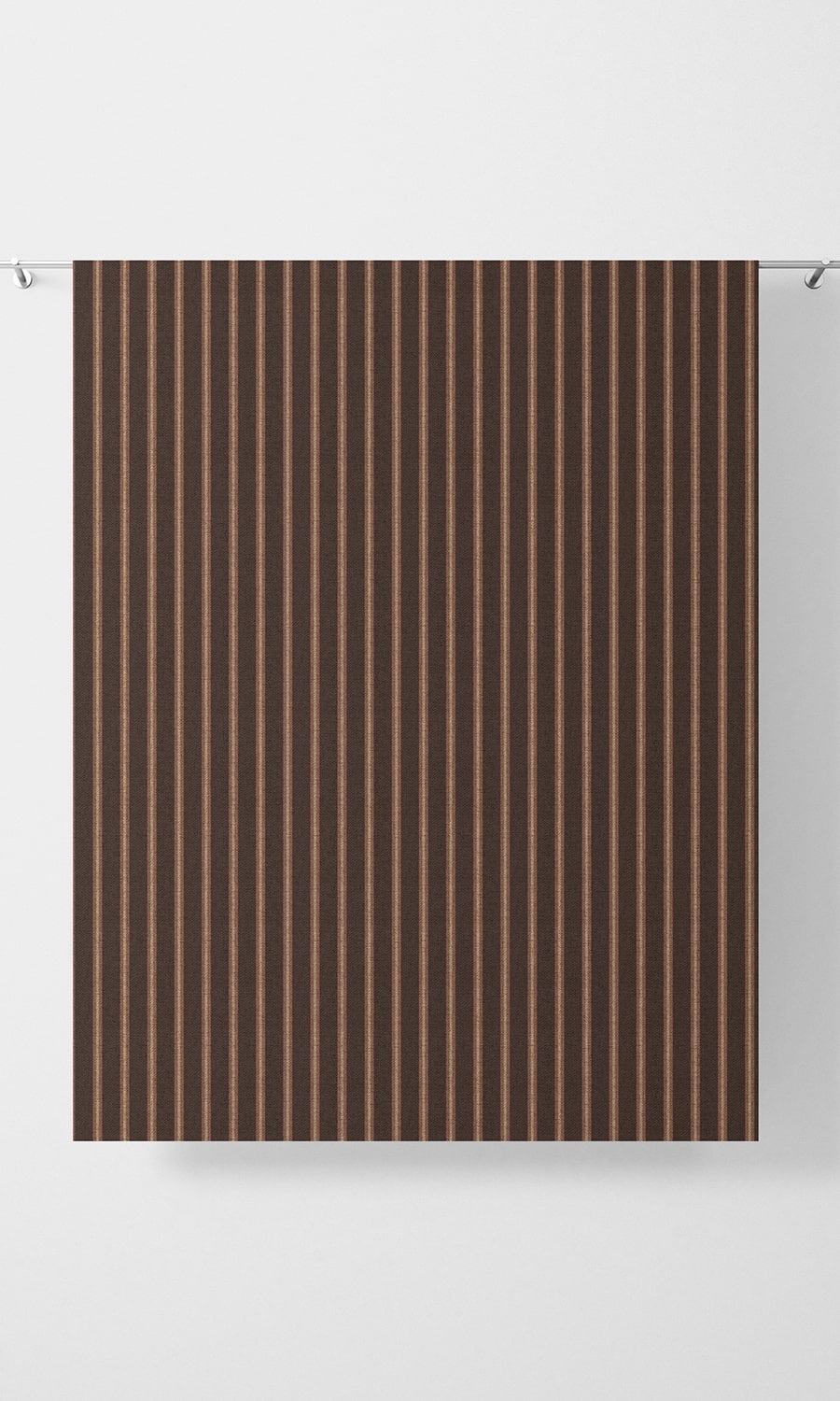 'Spruce Grove' is a coffee brown striped fabric that can harmonise with several decor styles. Its multi-toned browns add visual warmth and blend into the space rather than stand out, letting the room's centrepiece have its moment. Add to a rustic room to complement its hardwood floors, to a modern home to keep up with its clean-lined aesthetic or with a moody mancave to play to its dark palette and sharp-edged silhouettes.