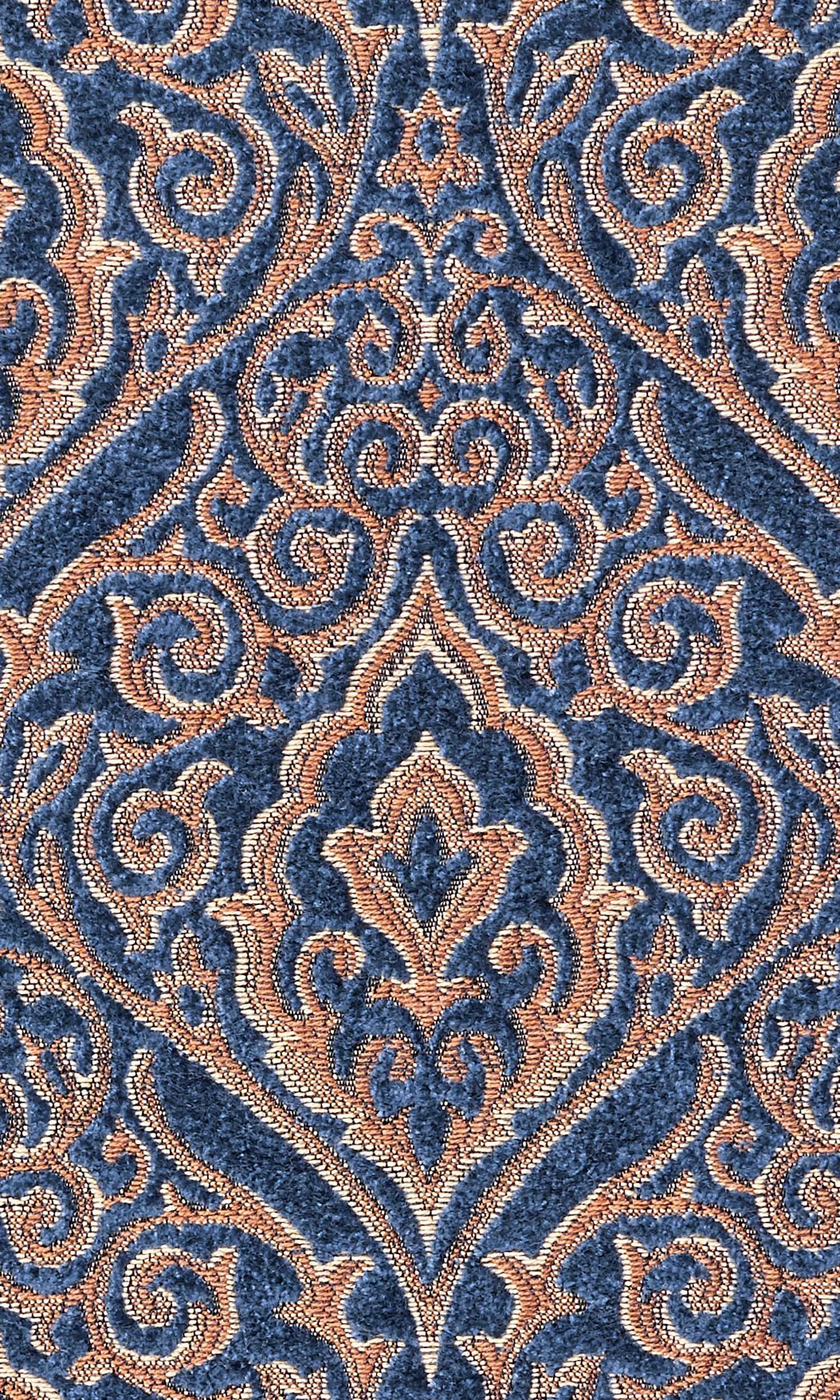 'Steel Tone' is for clients who dare to live like kings (and queens of course) in pomp and style. It is a bold visual of bright blue velvet teeming with vivid golden embellishments stolen as it were from the capes of emperors and walls of palaces. If you want to curate your formal living room with the timeless glamour of the glorious yesteryears, this extravagant damask is promising.