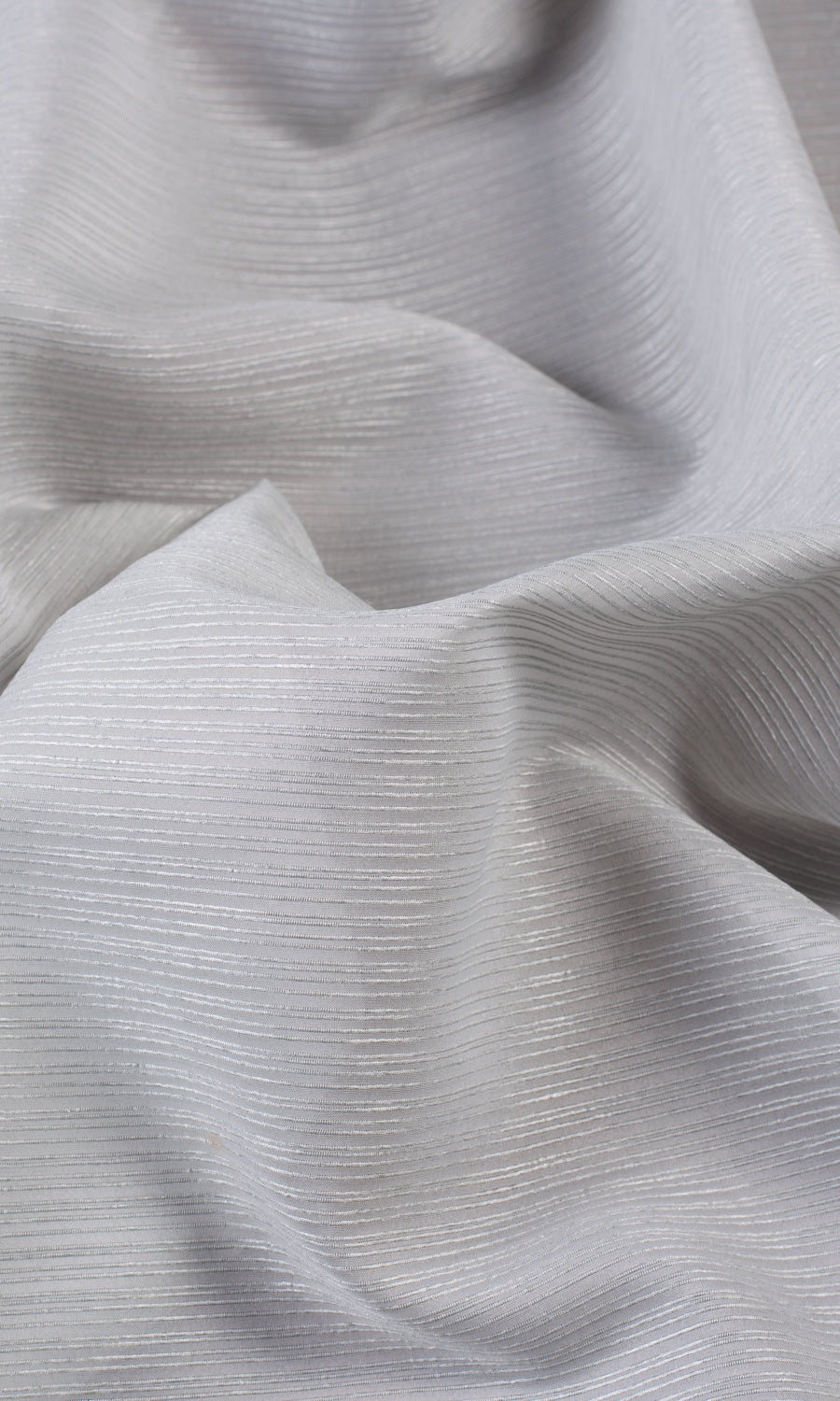 With a gentle grey tone and striped sheer weave, 'Stone Shadow' is here to transform your space into a poetry of light and shadow. Its textured pattern of stripes embedded into the weave offers an elegant blend of lustre and tone-on-tone contrast. This grey sheer fabric guarantees privacy during the day for homes that also want to welcome in light and air.