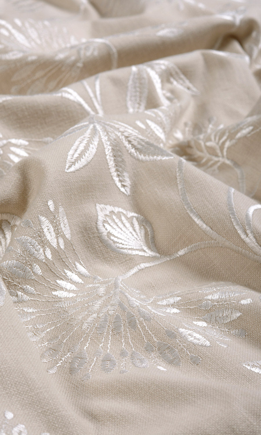 If you have a penchant for floral motifs, you may find 'Sun Glint's tastefully embroidered patterns disarmingly charming. Dress your home with a nature-inspired theme and palette with this elegant piece from our Artisan collection. With its climbing vine motif, it will woo the eye upward and optically elongate the room as a bonus point.