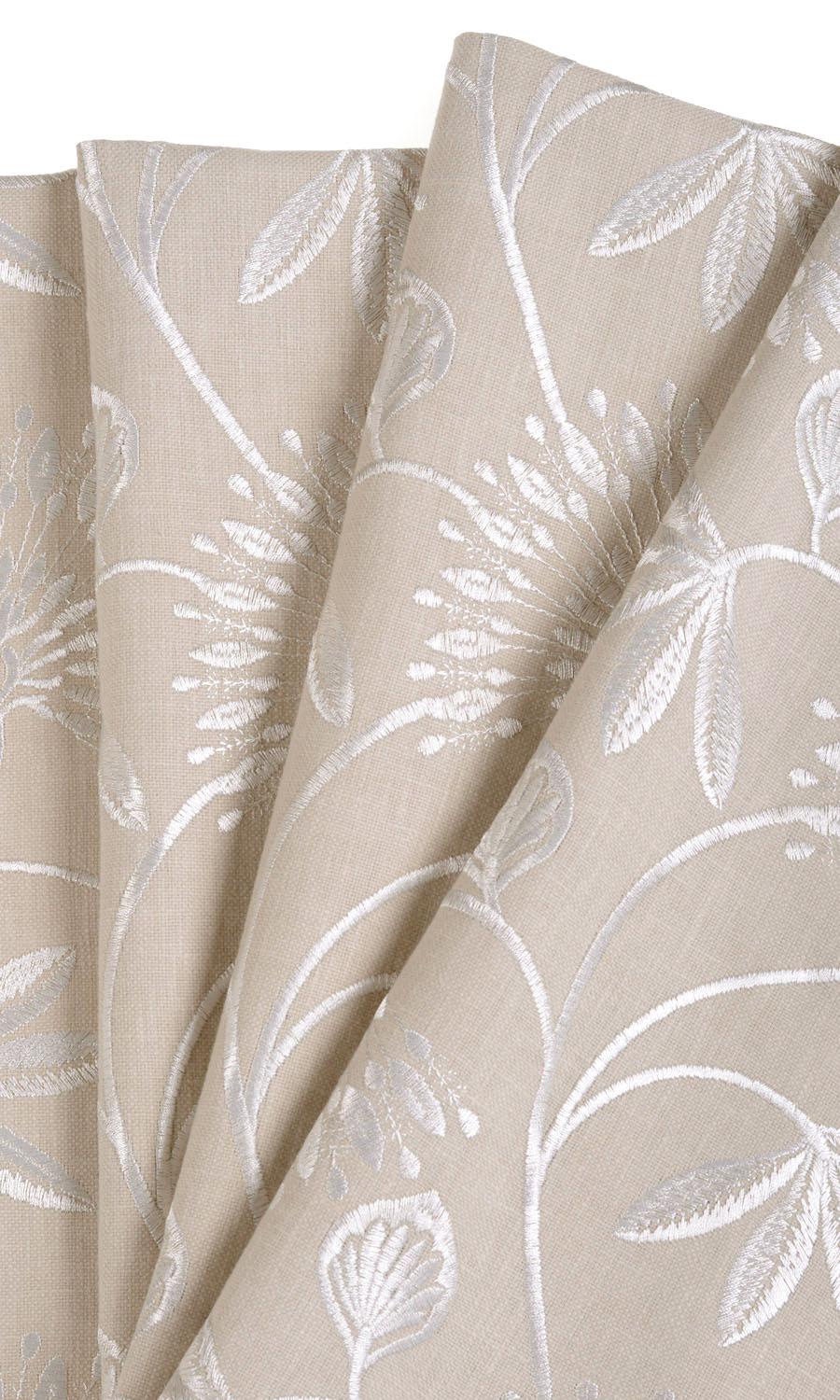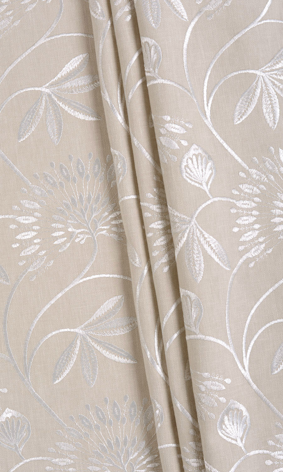 If you have a penchant for floral motifs, you may find 'Sun Glint's tastefully embroidered patterns disarmingly charming. Dress your home with a nature-inspired theme and palette with this elegant piece from our Artisan collection. With its climbing vine motif, it will woo the eye upward and optically elongate the room as a bonus point.