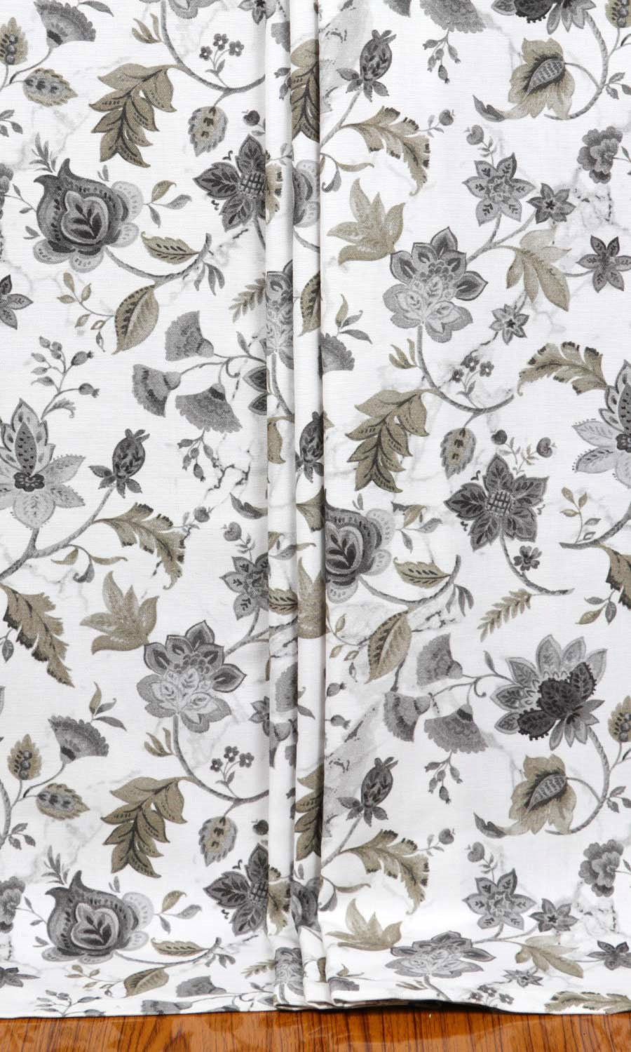 'Sweet Pine' blooms with the romance of Jacobean florals, paying an ode to old-world elegance but with a modern flair. Its scrolling floral pattern - a gentle dance of lush flowers and decorative leaves - unfurls in retro grey and white. Paired with the homely charm of pure cotton, this fabric is a tapestry of modern, quiet grace.