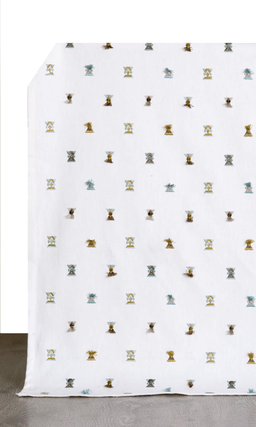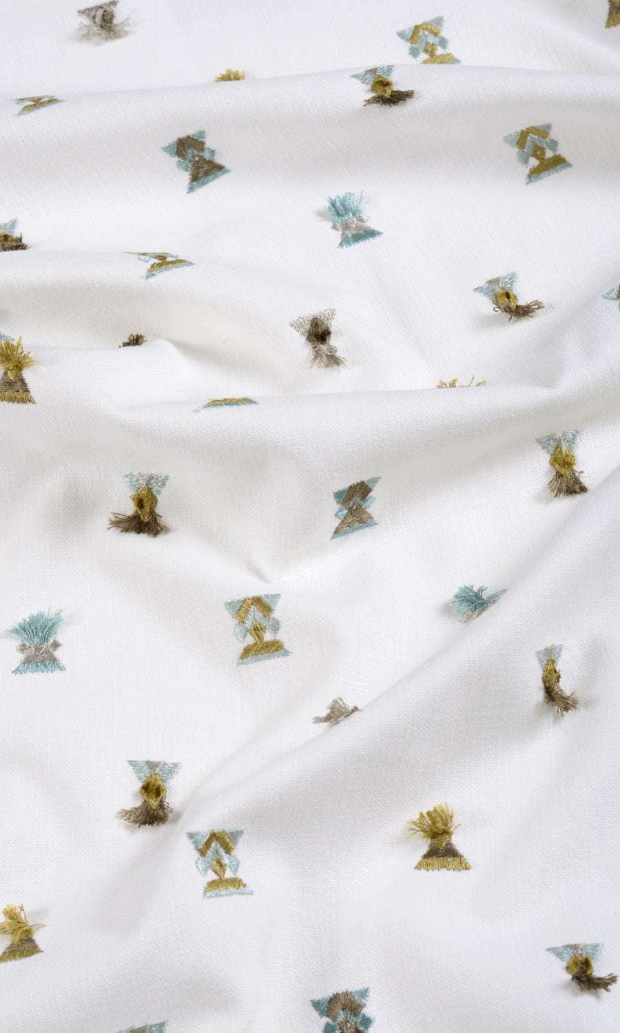 Bring in the je ne sais quoi element that brightens up a dull space with the right bit of elegance and easy-going vibes. Doll up your tiny tot's nursery, a young kid's room or even a light-hearted family room with this tassel-embroidered fabric that beckons cheer and optimism.