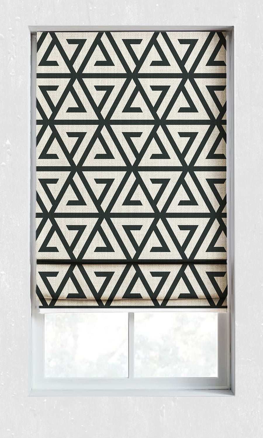 -Mix with curvy patterns: Contrast the straight lines of your geometric print roman blinds with the rounded silhouettes of floral and botanical prints in other room accessories to offer visual contrast.