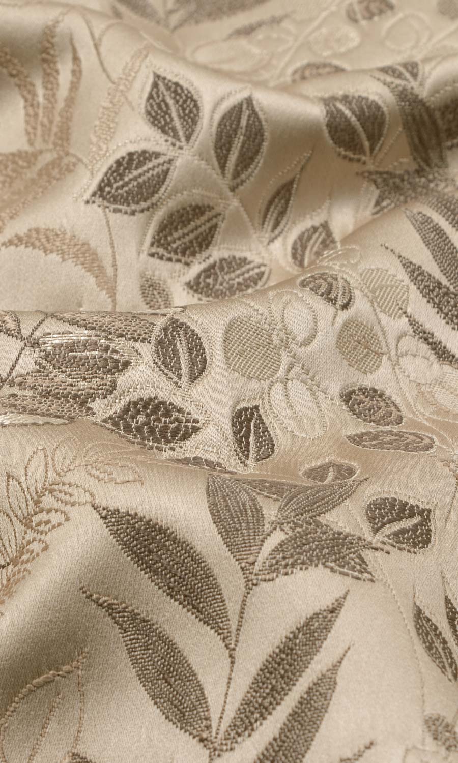 'Thunderstruck' is a romanticisation of nature's best gifts - like wild sprigs and curated fronds pressed between books to become precious keepsakes. Embedded into a soft brown silken base with muted metallic hues, these botanical delights woo the eye and ground the decor in a nature-inspired theme. That it requires minimum upkeep with its anti-wrinkle colourfast fabric base is the bonus that many find irresistible.