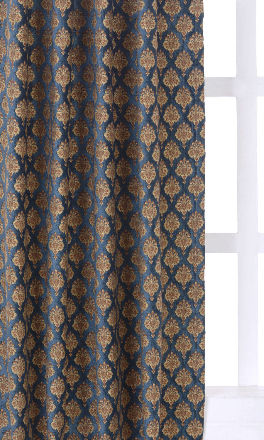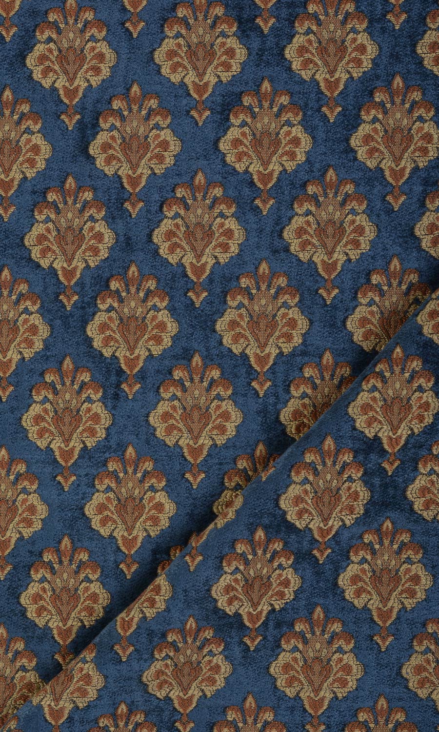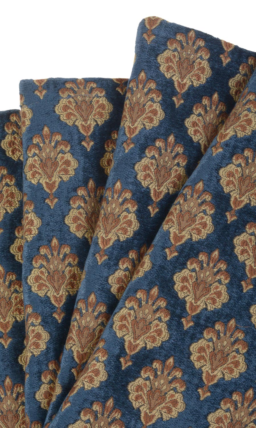 Opulent traditional living rooms and maximalist eclectic decor styles can blindly trust their mandate to the regal flourishes, aureate touches and delicate lustre of 'Truly Paradise'. Its golden damask pattern decked on deep navy blue velvet can round off any period home's flair for Victorian-style dramatic details and pattern play.
