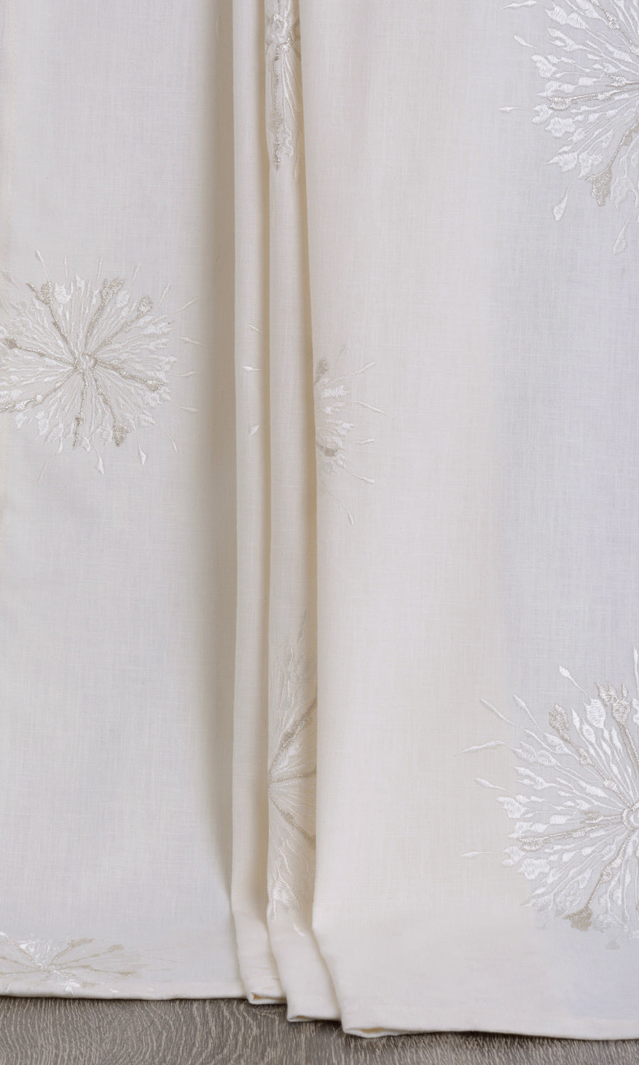 - The daintiness and textural beauty of its embroidered sunburst motifs