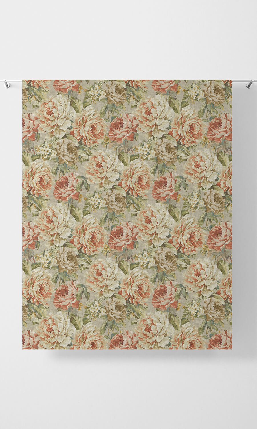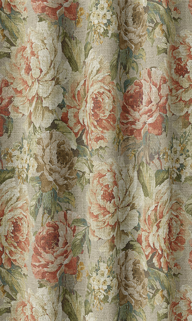 Featuring lush rose posies in idyllic rosy red and muted orange tones from end to end, 'Urban Petals' is an assertive statement of vintage flair that takes you back in time with a sense of pride. This piece oozes nostalgia and whimsy, transporting you to the breathtaking flower beds that framed erstwhile tudor homes and gabled cottages. Pair this floral beauty with antique furniture, Persian rugs and embroidered pieces to anchor the space in timeless themes and casual charm.