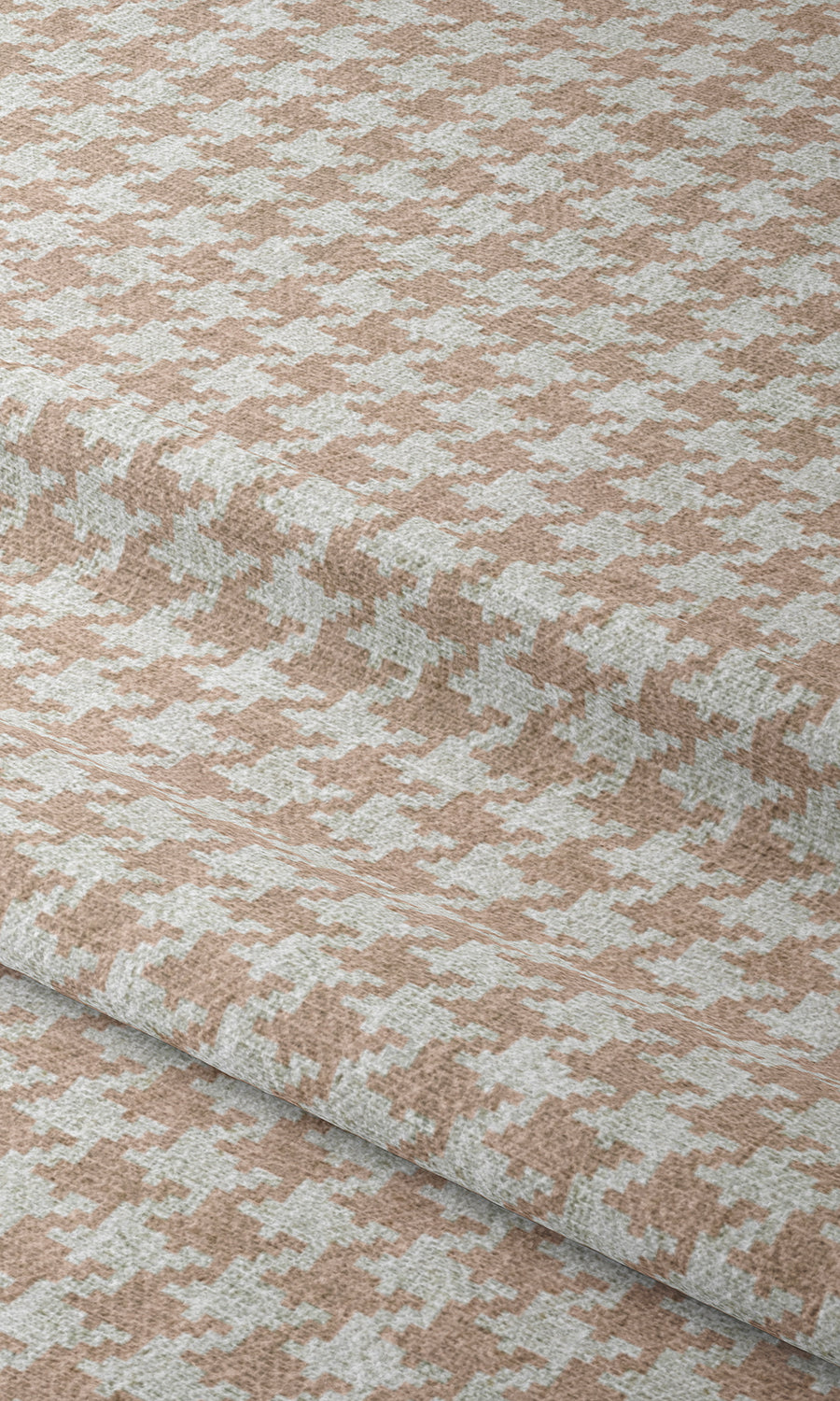 'Verona' gives the time-honored houndstooth a delicate refresh with a dreamy blush pink hue. The structured pattern takes on a softer, more whimsical character, making it perfect for spaces that embrace modern femininity, Parisian-inspired elegance, or a touch of vintage charm. Whether adding a refined statement to contemporary interiors, a cozy sophistication to bedrooms, a dreamy touch to nurseries, or a subtle contrast in neutral palettes, this fabric proves that bold design can still be beautifully delicate.