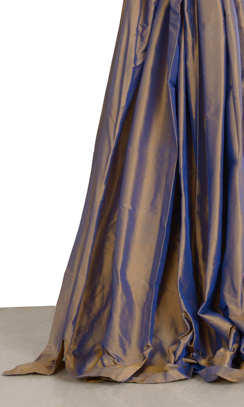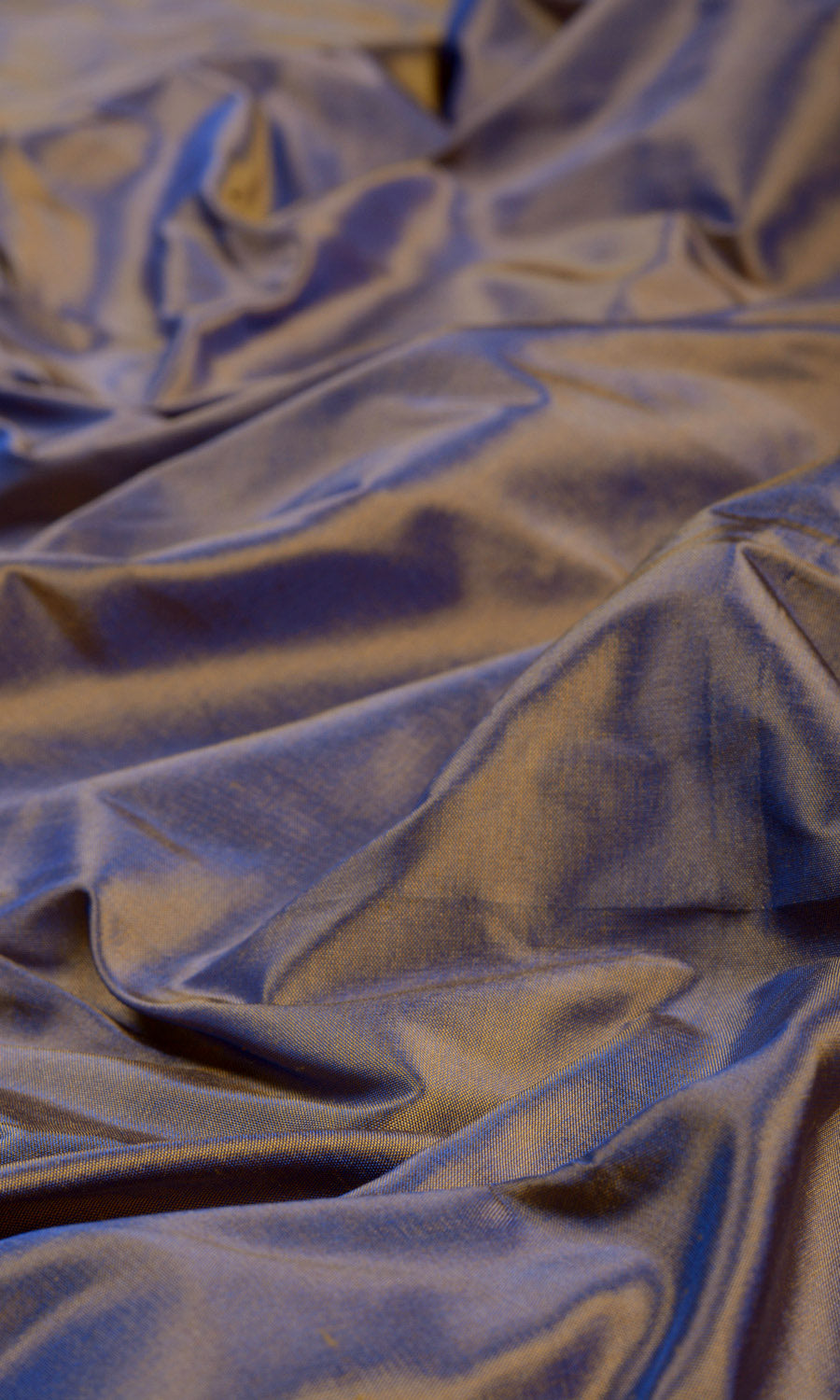 If you love to dress your home with exotic fabrics and curated finds, this 100% pure silk that comes all the way from India is the best way to finish your decor. With its luxurious blend of purple and gold, this two-tone silk exudes opulence and adds a touch of regal charm to any decor. Pair with brass-finish or gold metallic accents, ornate motifs and ritzy fabrics for a rich, luxe appeal.