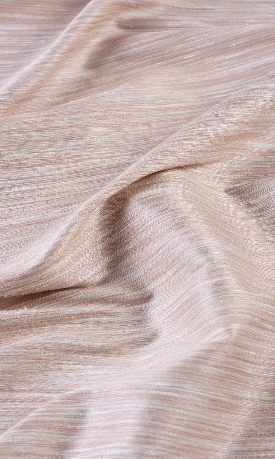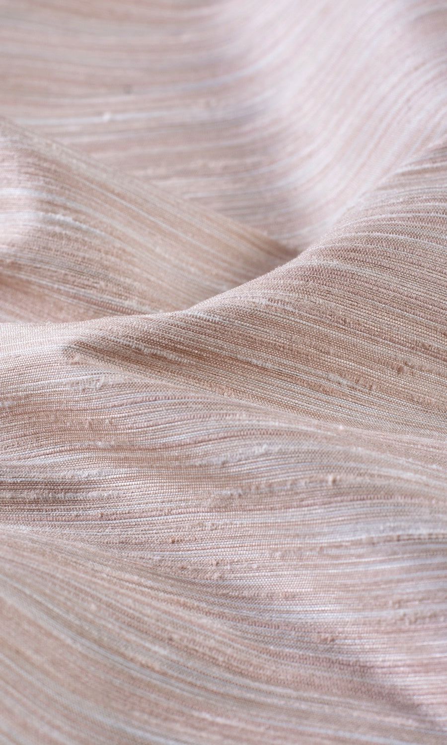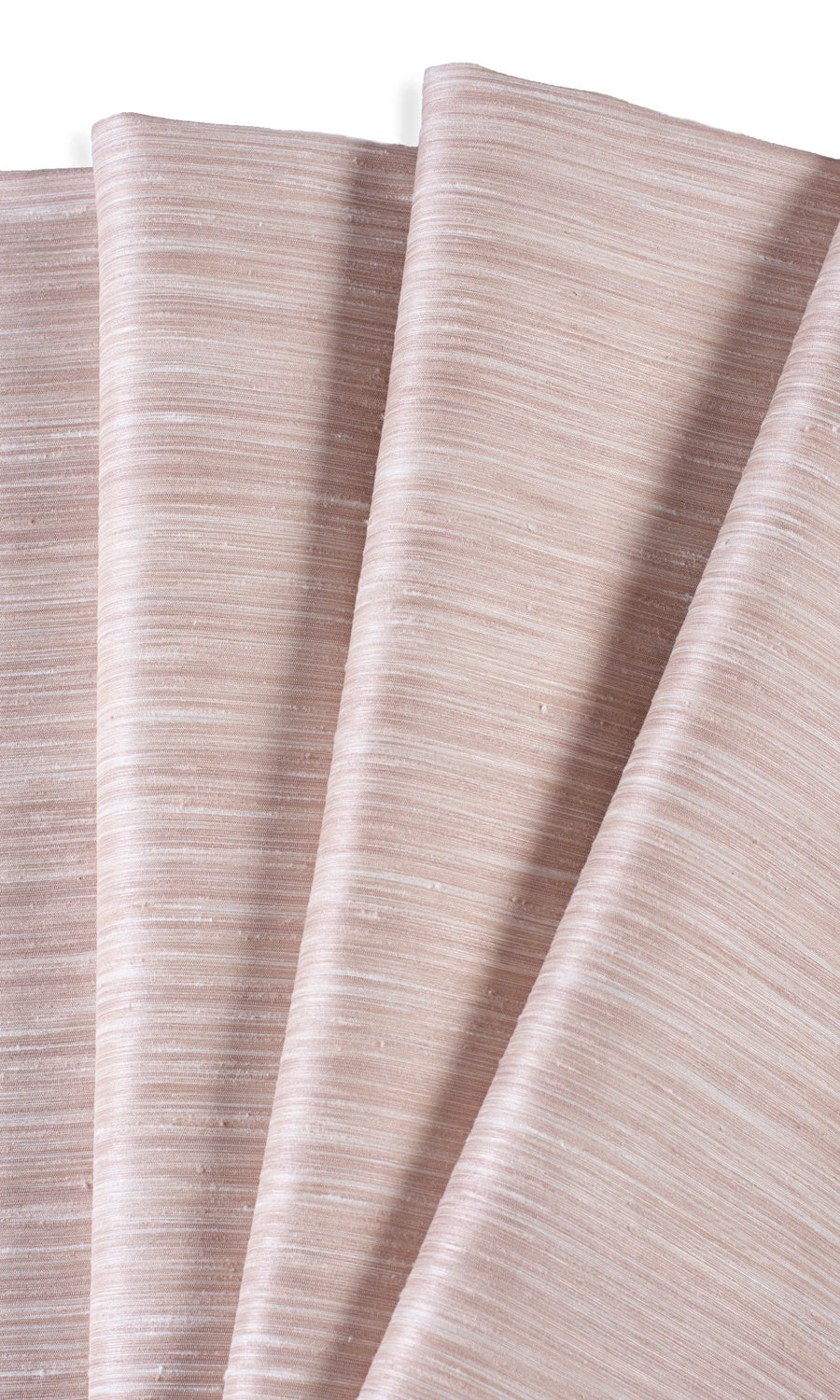 Evoking the coolness of sweet summer fruits and crisp Spring mornings, 'Walnut Echo' brings a soft refreshing presence into any space. Its dreamy pink, deepened and softened in a rhythmic flow by fine striations, offers an interplay of lustre and texture. Its graceful drape and soft glow are the perfect layer for serene interiors that embrace light, air and quiet luxury.