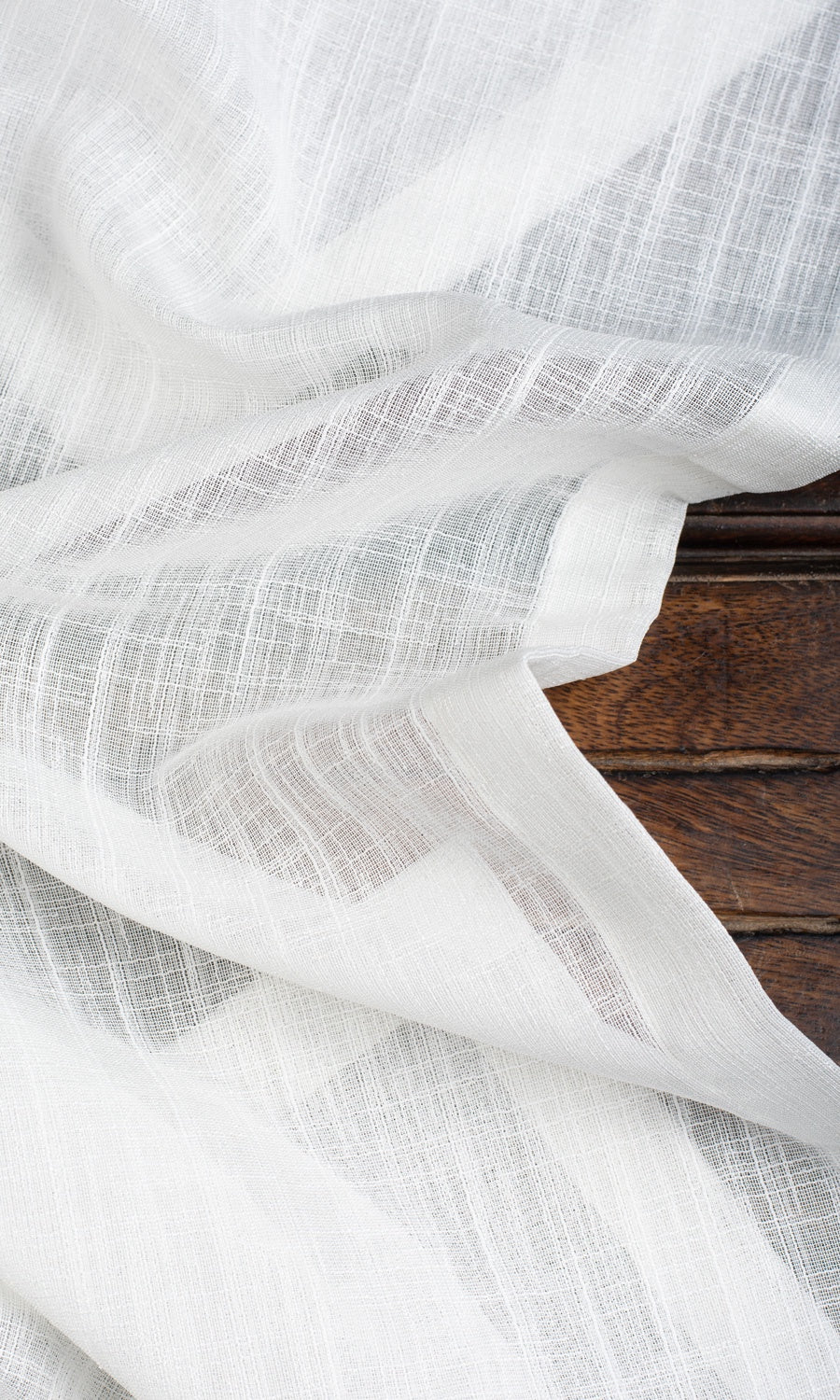Gracefully textured and effortlessly calm, 'Whispering Glow' is a sheer that feels both grounded and ethereal at the same time. With its subtle slubs and parchment-like softness, it lends a handcrafted touch to modern and nature-inspired understated interiors. Ideal for rooms that crave light, it diffuses the sunlight with a mellow hush while maintaining your privacy.