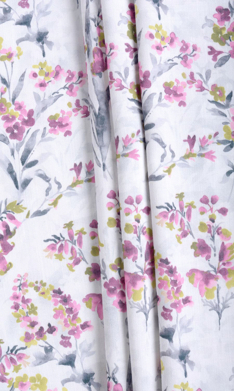 - The serene beauty of its all-over print of dainty pink flowers on a white backdrop