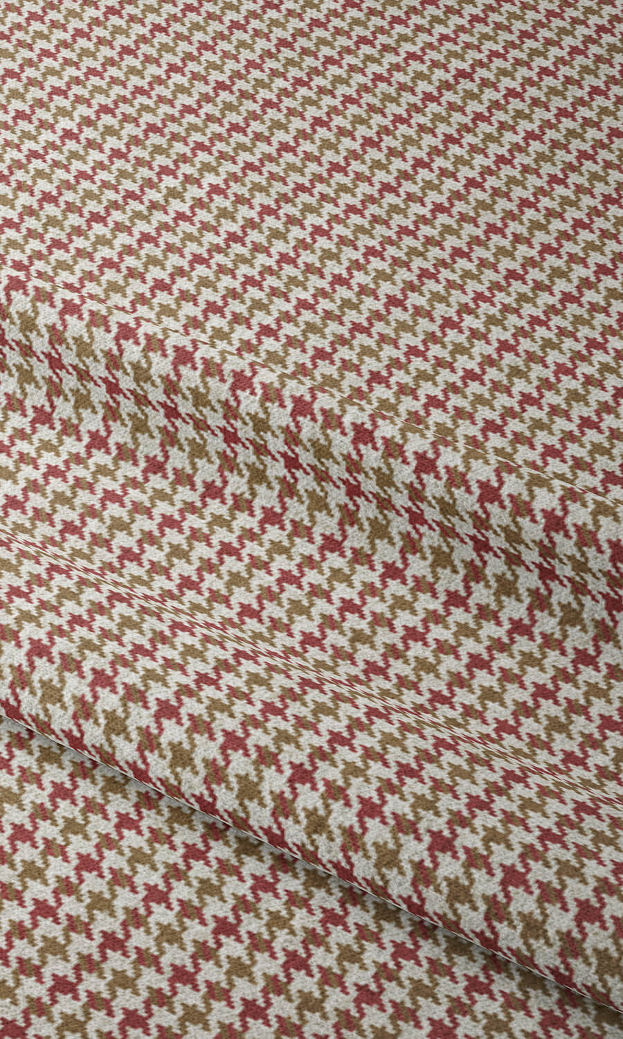 'Wood Vibe' draws from the warmth of heritage textiles and the comfort of worn-in country homes. The houndstooth pattern in a warm palette of brick red and brown enhances the approachability and casual charm of the pattern. It's perfect for styling spaces that need a gentle nod to tradition without feeling too precious. Pair it with buffalo plaids, ticking stripes and dainty florals to layer up a countryside narrative, or use it to add depth and texture to a quiet reading nook or a family room with soul.