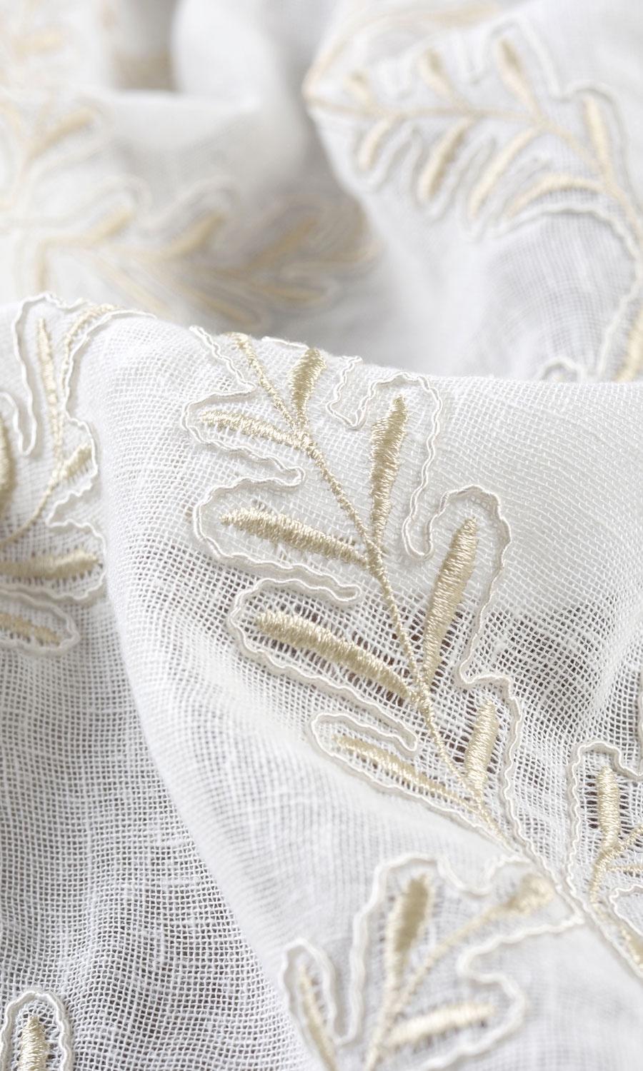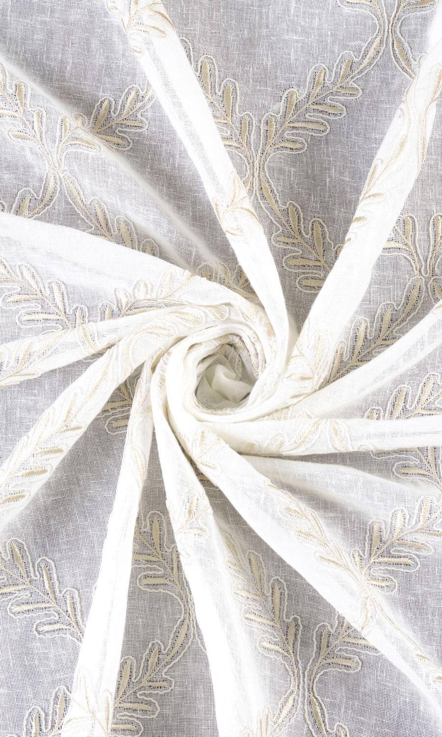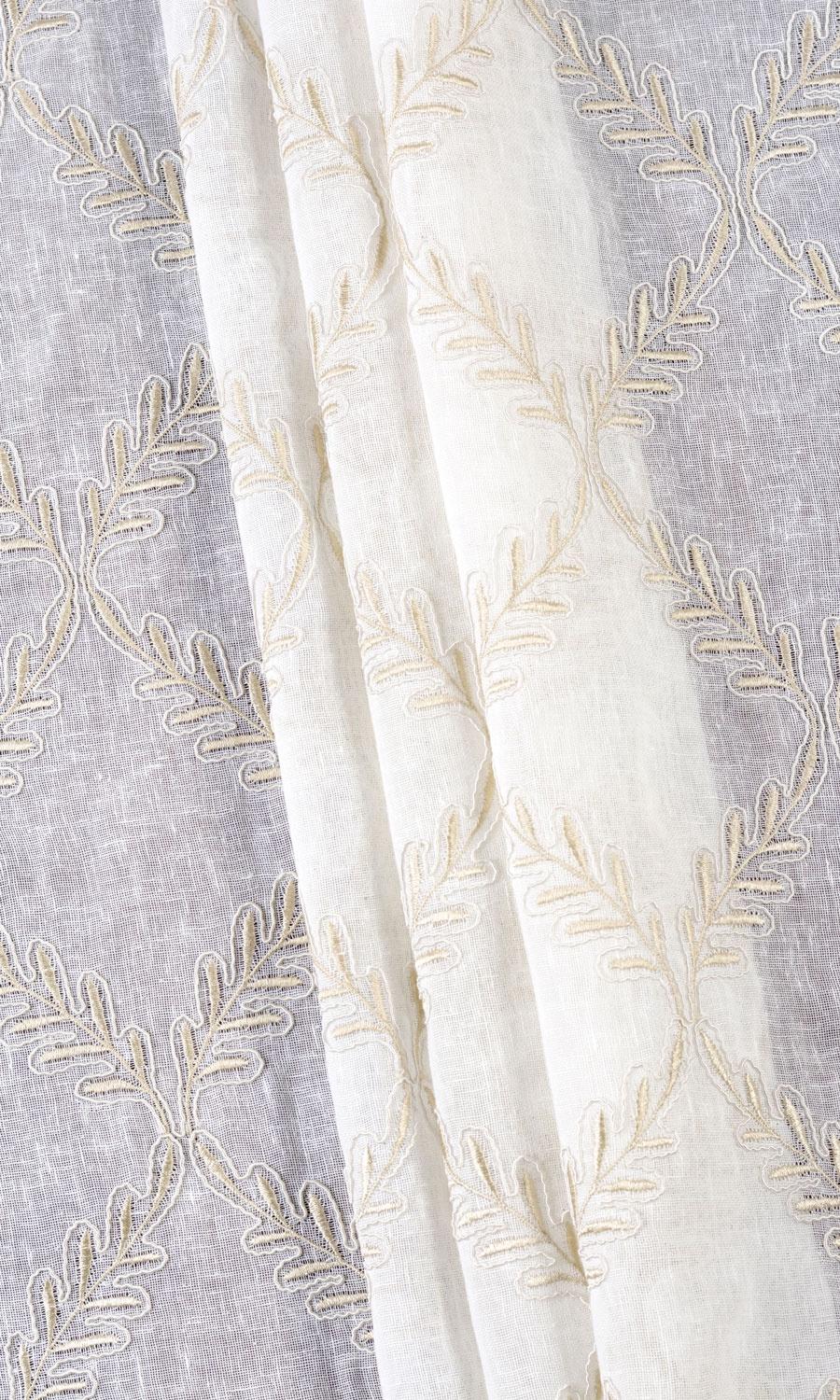 Botanical and geometric motifs merge in 'Yildiz' to render a nature-inspired aesthetic with a modern flair. Its delicate leaf vines surging upward in a lattice pattern carry curvy details, embroidered texture and subtle colour contrast for visual allure. Frame a country home's window seat or soften a condo's picture window with this white sheer casting soft shadows and subtle outdoorsy touches.