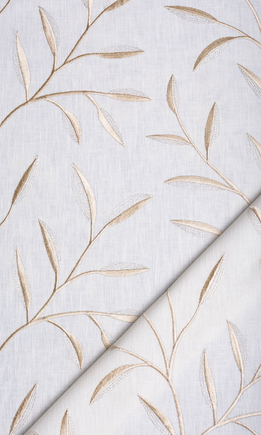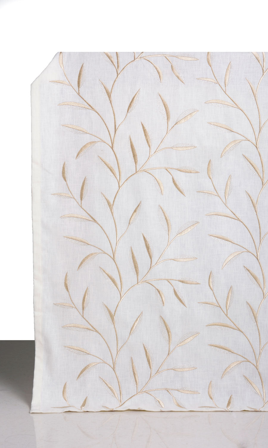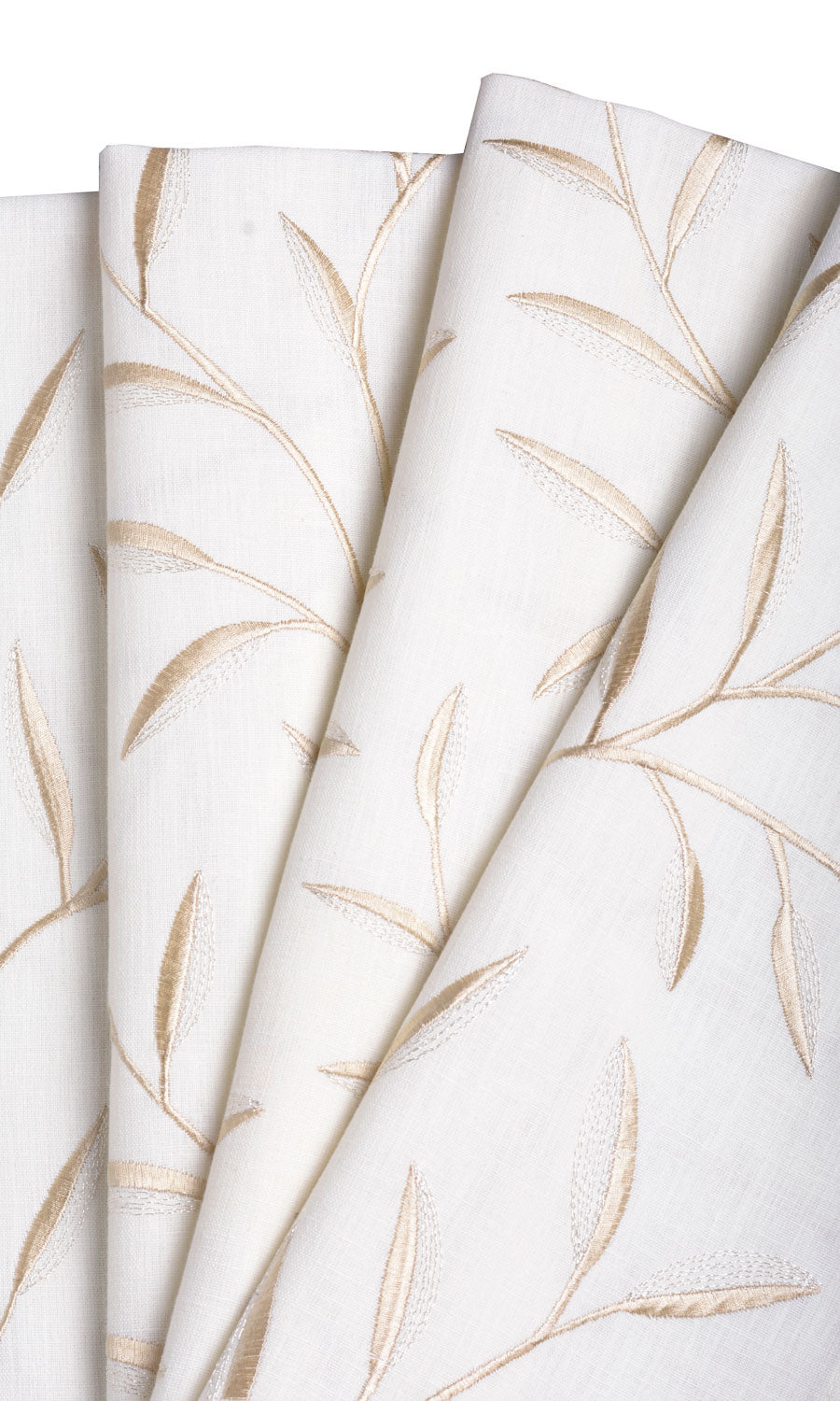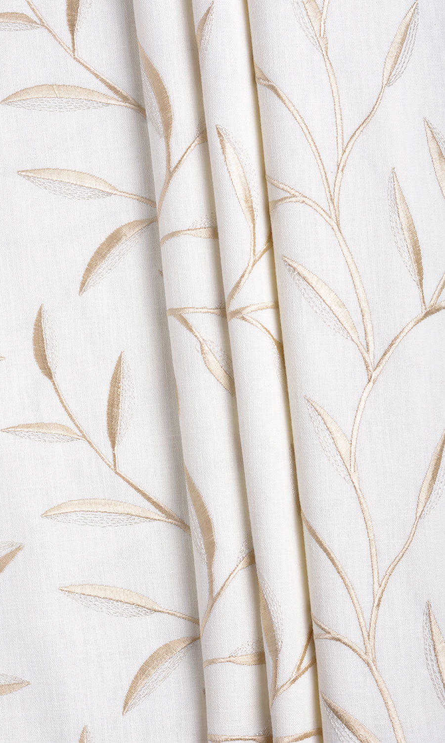 A moment stolen from a whimsical fairytale or a misty countryside view frozen in time! 'Zahabia' offers elegant floral vines in a soft palette of rustic white slubby linen and subtly radiating cream-beige embroidery. It's a lightweight linen-blend that can dress up an airy living room, a light-bathed sunroom or a classical-style lavish bathroom - promising a slice of nature's charm wherever it rests.